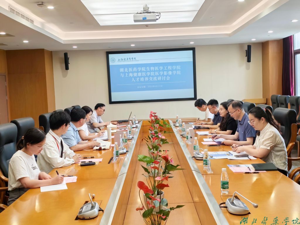 本网讯(通讯员 邓闻达)6月12日上午,湖北医药学院生物医学工程学院分党委书记郭瑞带队来到上海健康医学院医学影像学院,开展“新医科”背景下医工交叉学科的专业建设、课程建设以及实践教学平台搭建等方面学习、交流、研讨。生物医学工程学院副院长陈文、教科研办安娜、邓闻达、附属太和医院精准医学研究中心主任赵亮、附属太和医院医学影像研究所副所长杨波随行参加交流活动。
