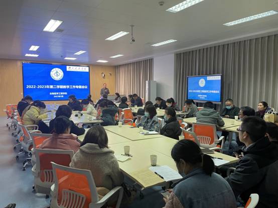 本网讯(通讯员 邓闻达)3月24日下午,生物医学工程学院在教师发展中心102室召开本学期教学工作会暨本科教育教学审核评估推进会。校党委常委、统战部部长、生物医学工程学院院长谭艳,教务处处长刘涛,学院领导班子成员、专业负责人、教研室主任及秘书,教学科研办人员参加了会议。会议由学院分党委书记郭瑞主持。