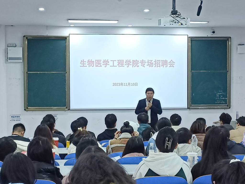 本网讯(通讯员廖佳龙)2023年11月10日下午,学院邀请深圳迈瑞生物医疗电子股份有限公司等一行6家企业来校参加学院专场招聘会。专场招聘会由学院副院长肖彬主持,毕业班辅导员及2024届应届毕业生200余人参加。