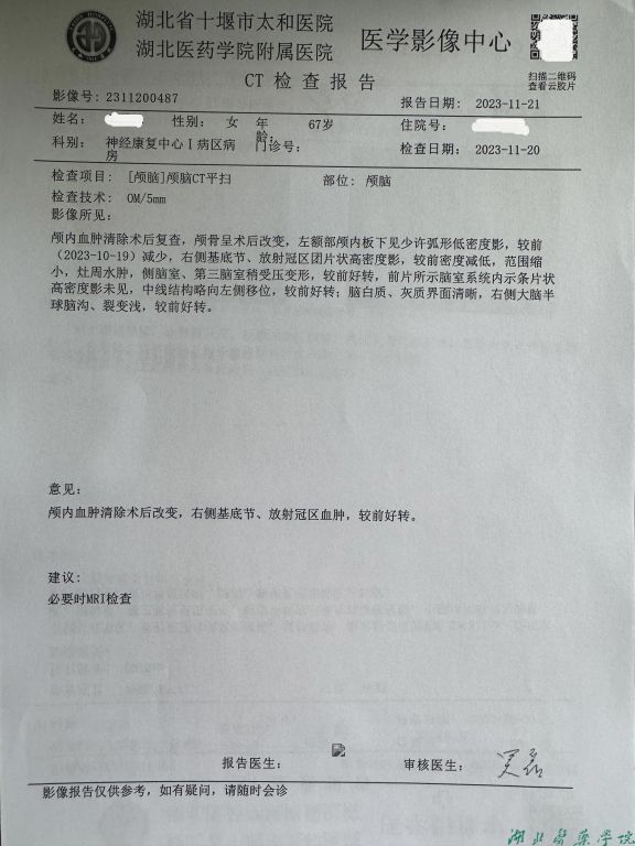 身体结构与功能:2023-10-06我院颅脑CT:右侧基底节区、放射冠血肿破入脑室。患者因“脑出血”导致左侧肢体运动障碍;
