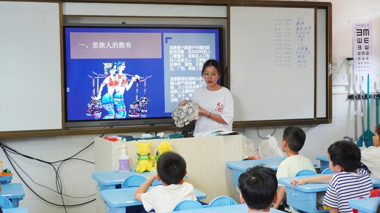 (本网讯 黄圣胤 李进)为不断巩固中华民族共同体意识的思想基础,促进各民族团结共创美好生活,以实际行动贯彻落实党的二十大精神。生物医学工程学院橙(承)红暑期社会志愿服务队在湖北省钟祥市东桥镇镇直小学开展以“铸牢中华民族共同体意识,民族团结我践行”为主题的志愿支教活动。