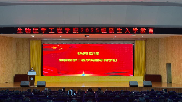 本网讯(通讯员 邓闻达)为帮助2025级新生深入了解专业发展现状、明晰就业前景与成长路径,进一步激发专业学习兴趣、筑牢专业认同感,近日,生物医学工程学院在科教楼一楼学术报告厅隆重开展新生专业思想教育专题会议。校党委常委、副校长、统战部部长谭艳,学院全体领导班子成员及教师与2025级全体新生共同参会,为新生开启专业认知的 “第一课”。